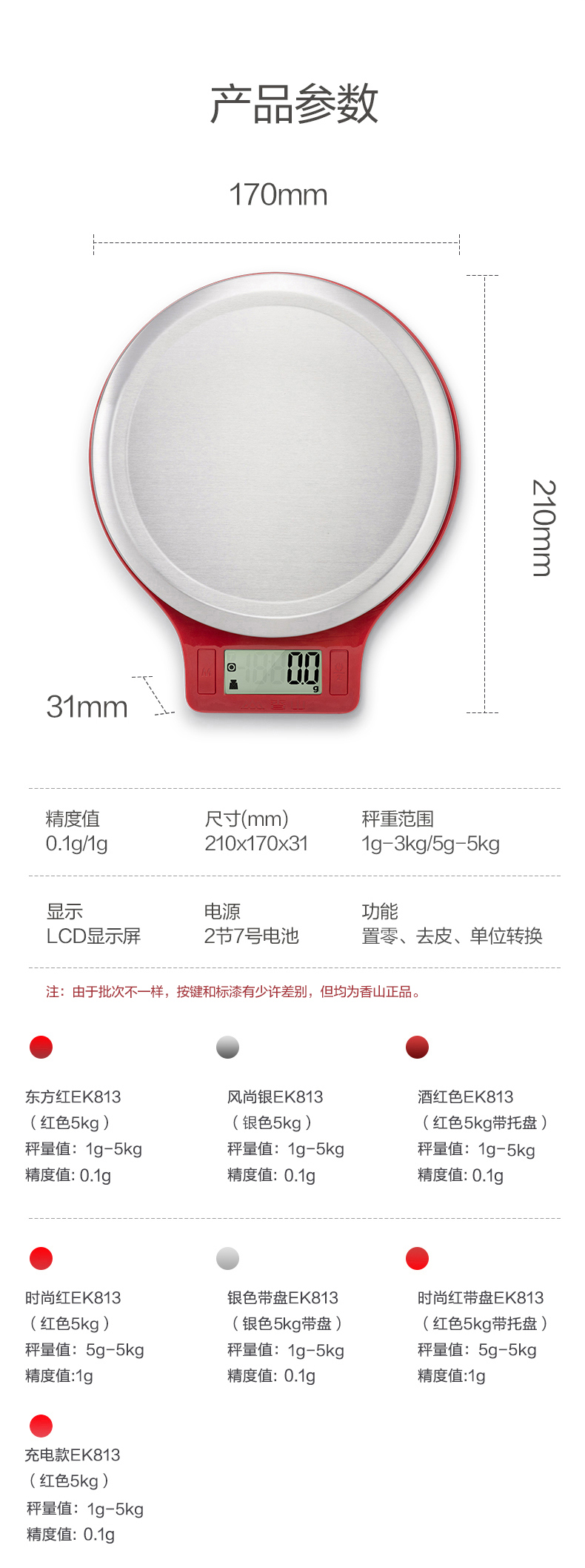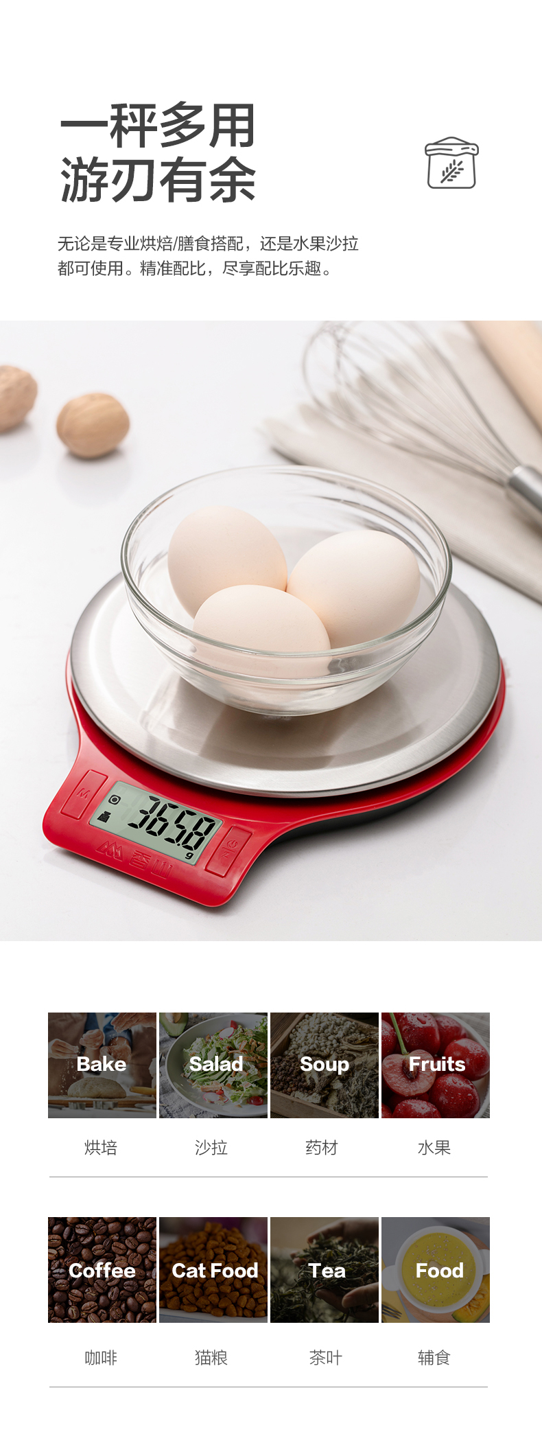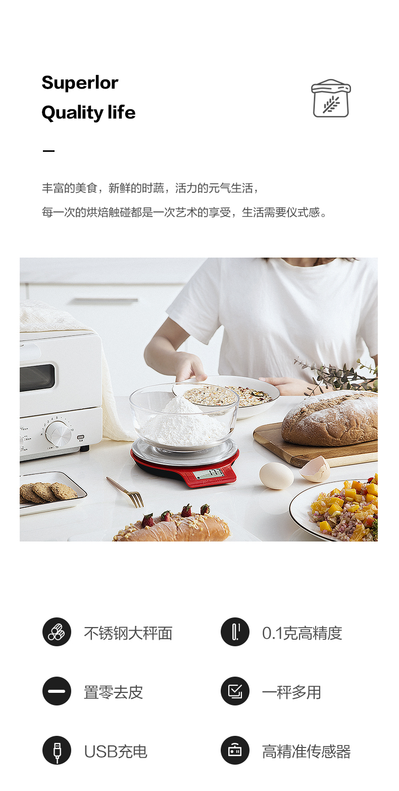 红色香山电子厨房秤(5kg/1g)